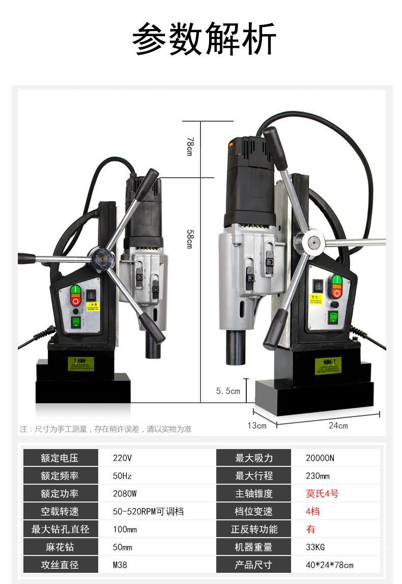 k8凯发380V磁座钻大功率二档变速正反转磁力钻取芯钻JLZ-32/38/49
