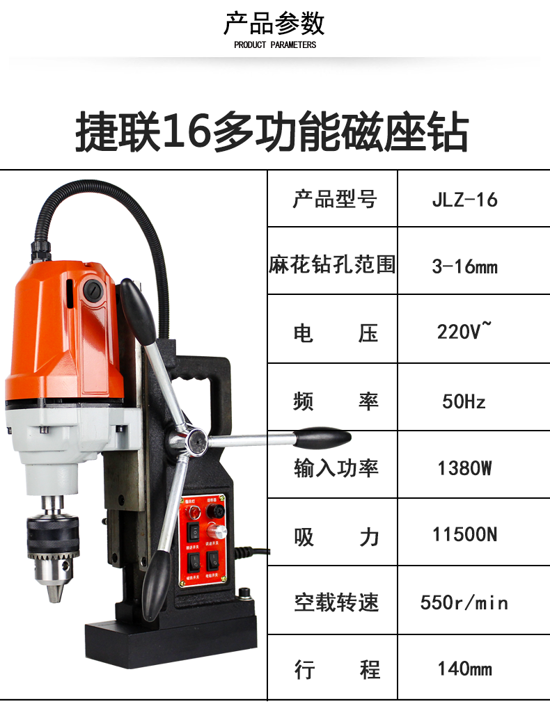 k8凯发磁座钻磁力钻吸铁钻空心钻开孔钻正反转无极/档位调速JLZ-16