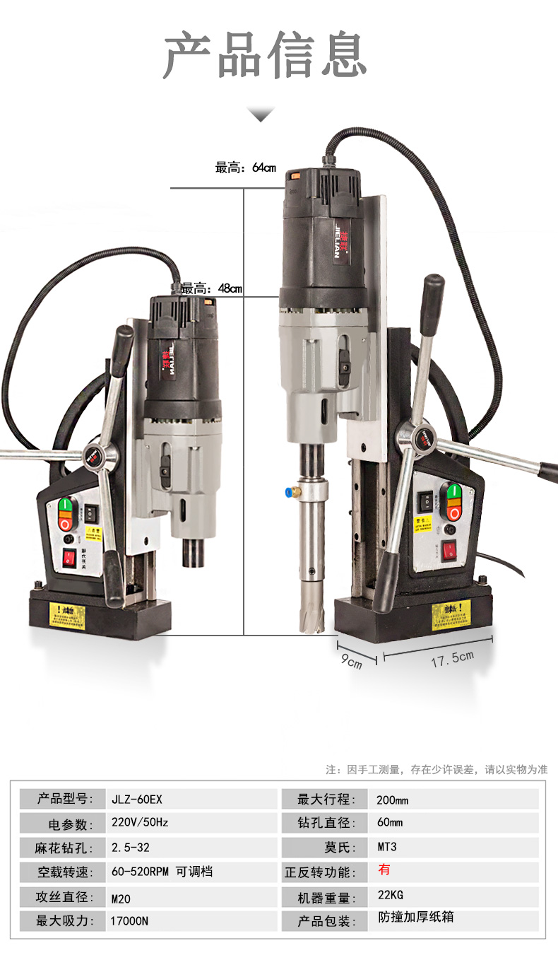 k8凯发磁座钻磁力钻吸铁钻空心钻开孔钻正反转无极/档位调速JLZ-16