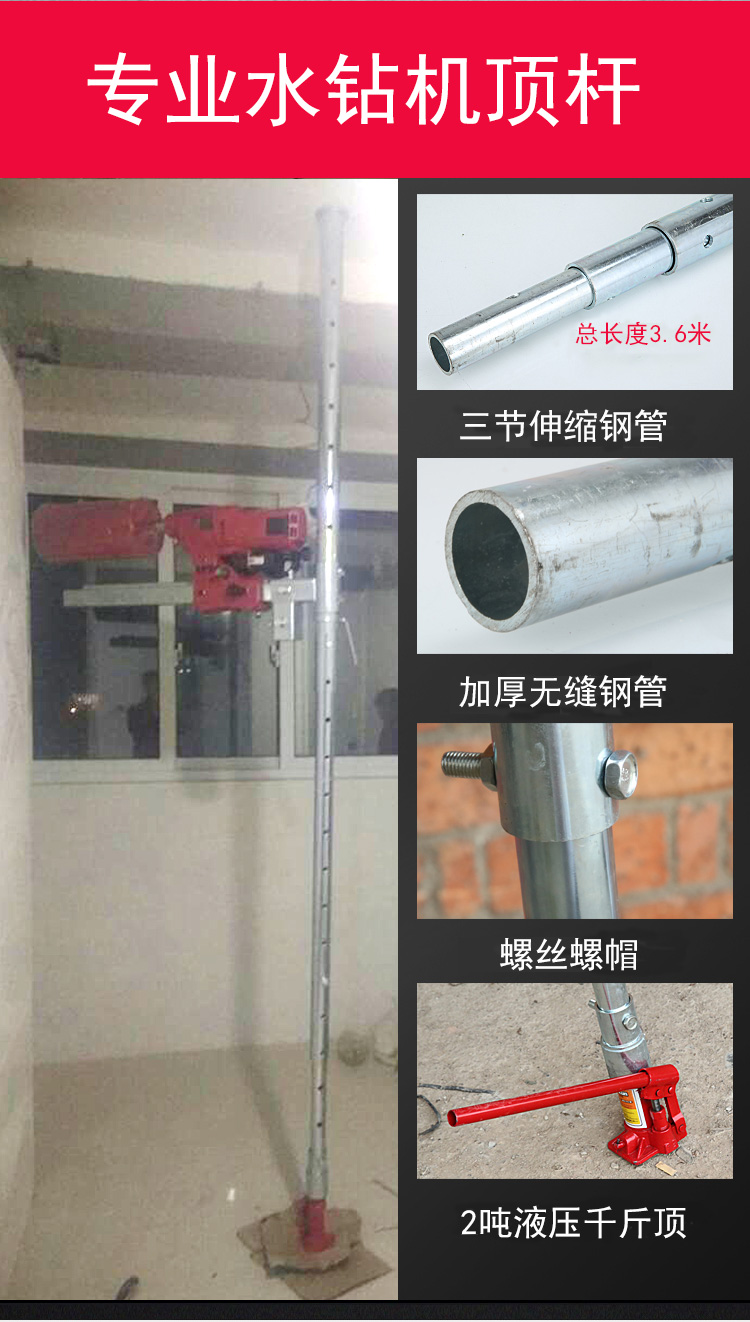 k8凯发水钻机液压顶杆打孔机万向立柱支架通用钻孔机升降固定架