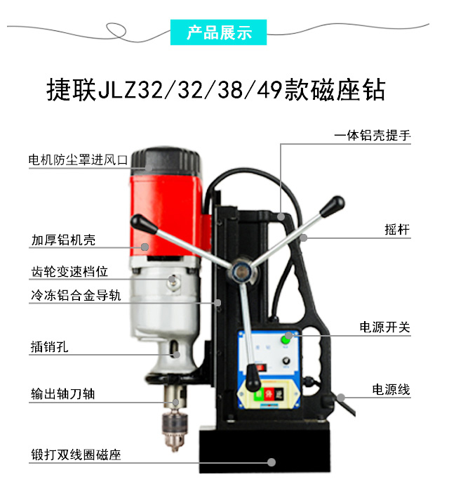 k8凯发380V磁座钻大功率二档变速正反转磁力钻取芯钻JLZ-32/38/49